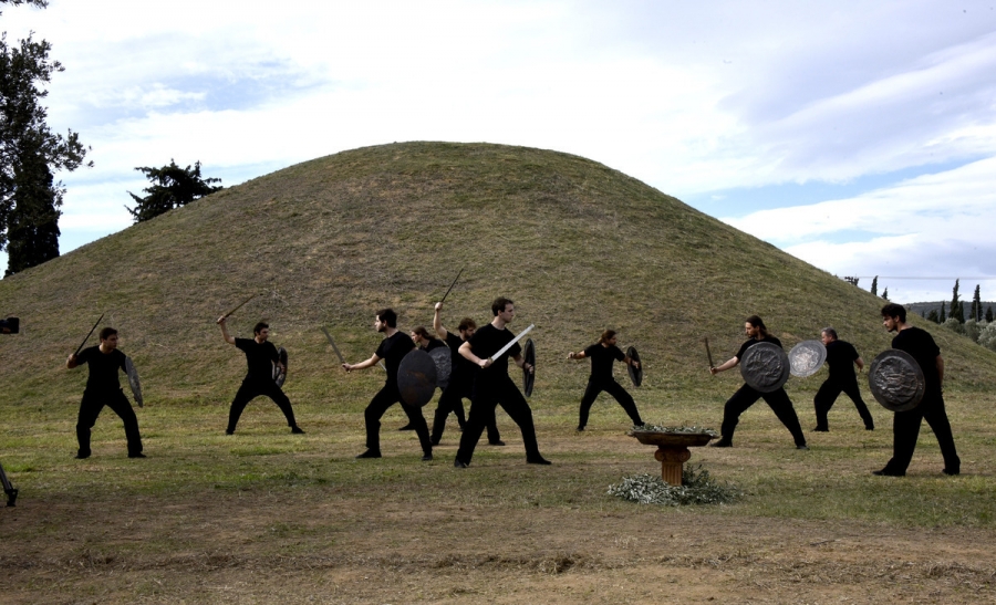 Το δρώμενο που βασίζεται σε κείμενα του Ηροδότου και “ντύνεται” με πρωτότυπη μουσική από ομάδα κρουστών παραπέμπει σε εικόνες μάχης, καθώς παράλληλα με την αφήγηση, δέκα ηθοποιοί σπαθογραφούν. Τη σκυτάλη παίρνει μια γυναίκα- σύμβολο της μητέρας που γεννά πολεμιστές και πρωταθλητές- η οποία τραγουδά ένα παραδοσιακό τραγούδι, για να ακολουθήσει ένας χορός 20 ατόμων που αντιπροσωπεύουν την πορεία και τον Μαραθώνιο του σύγχρονου ανθρώπου, αναζητώντας το φως που πάντα τους οδηγεί στο όραμά τους.