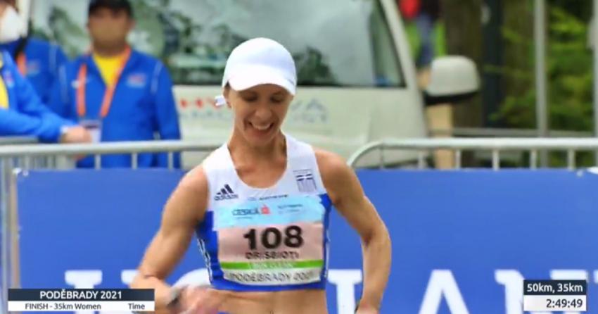 Η πρωταθλήτριά μας που γυμνάζεται με τον Ναπολέντα Κεφαλόπουλο, από την αρχή της κούρσας ήταν στη δεύτερη θέση. Έχοντας την καλύτερη επίδοση από τις συμμετέχουσες έδειξε την κλάση της ακολουθώντας πολύ καλή τακτική. Έτσι στο 20ό χλμ πέρασε την Ιταλίδα Τζιόρτζι και τέθηκε επικεφαλής.