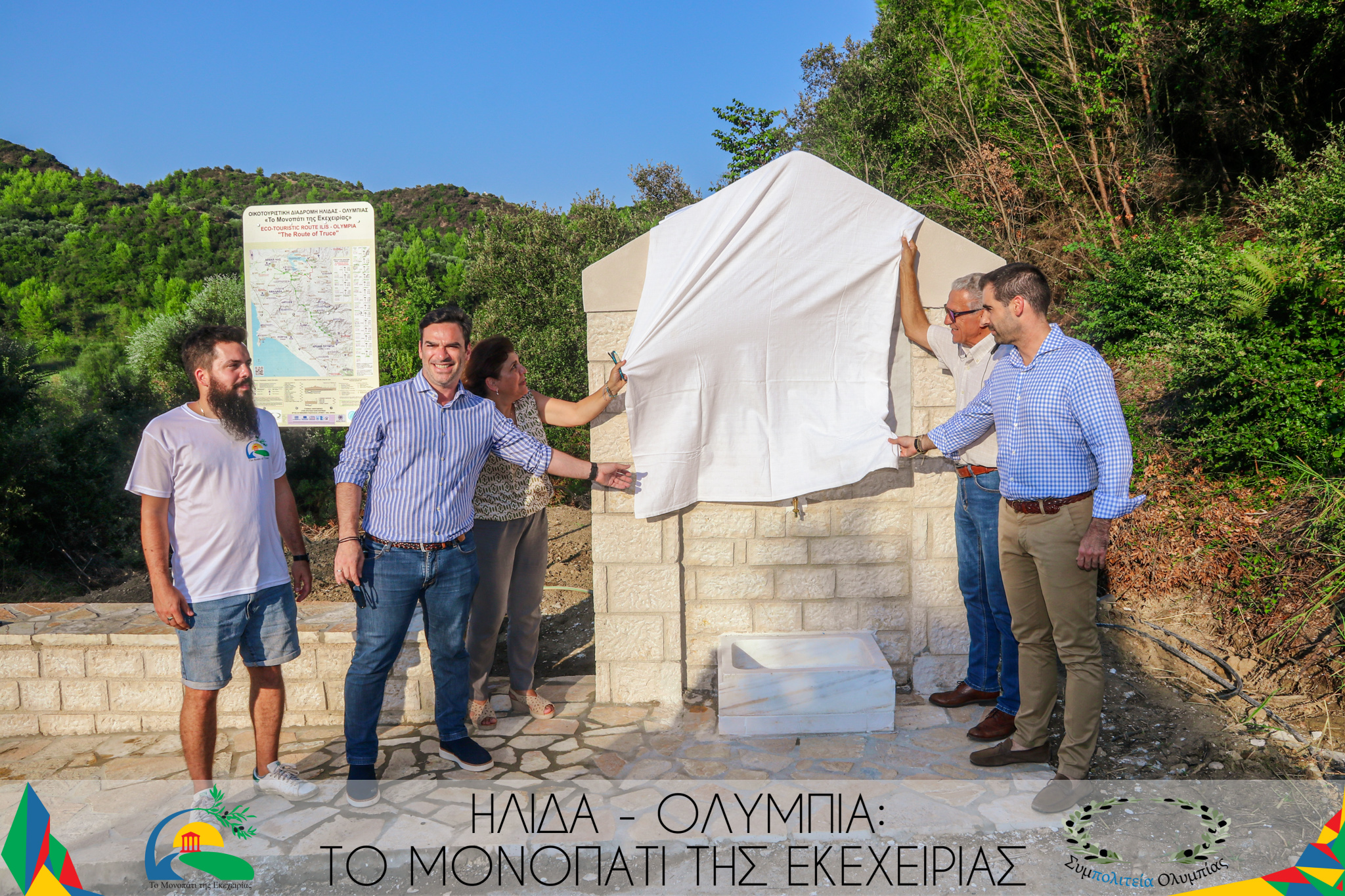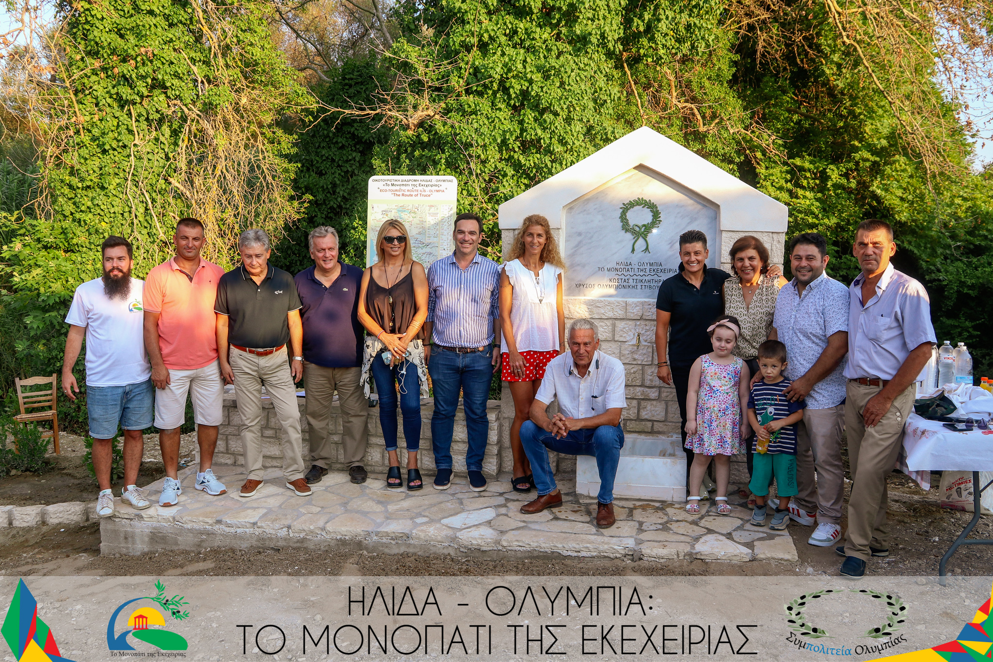 Η πρόεδρος της Συμπολιτείας Ολυμπίας κα Σοφία Χίντζιου Κοντογιάννη κατά την έναρξη των εκδηλώσεων αφού ευχαρίστησε τους παριστάμενους, αναφέρθηκε στα έργα πρόσβασης, ενημέρωσης και πληροφόρησης, που έχουν ήδη γίνει επί της «Οικοτουριστικής διαδρομής Ήλιδας-Ολυμπίας: Το Μονοπάτι της Εκεχειρίας» επισημαίνοντας: «Σήμερα ξεκινάμε ένα καινούργιο κεφάλαιο του «Μονοπατιού της Εκεχειρίας» με αυτούς τους δύο αφιερωματικούς χώρους. Τιμούμε αθλητές που μας έκαναν να κλάψουμε από χαρά και συγκίνηση, να γελάσουμε, να αισθανθούμε υπερήφανοι, τους Έλληνες Ολυμπιονίκες!» Τόνισε ότι σε όλο το εύρος του Μονοπατιού θα υπάρχουν τέτοια αφιερώματα.