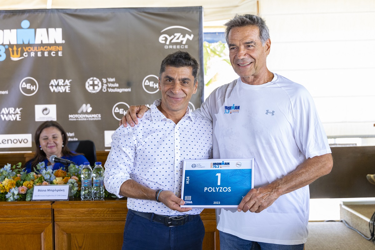 Τη Συνέντευξη Τύπου τίμησε με την παρουσία του ο Παγκόσμιος Πρωταθλητής στο Τρίαθλο, Χρήστος Γαρέφης, με τεράστια προσφορά στον αθλητισμό. Η ομάδα της ΕΥ ΖΗΝ Greece επιφύλαξε μια ευχάριστη έκπληξη στον κ. Γαρέφη, παραδίδοντάς του το No 1 BIB Number για τον αθλητή του, Παναγιώτη Πολύζο, ο οποίος βγήκε πρώτος πέρυσι στο IRONMAN® 70.3® Vouliagmeni, Greece 2022 και πριν από λίγες μέρες διακρίθηκε και στο παγκόσμιο πρωτάθλημα IRONMAN®. Ο Χρήστος Γαρέφης σημείωσε: «Δεν υπάρχει μεγαλύτερη ανταμοιβή για έναν αθλητή από τέτοιες εκδηλώσεις οι οποίες αποτελούν δικαίωση και του δείχνουν πως έχει πάρει τον σωστό δρόμο στη ζωή του. Όπως χαρακτηριστικά έχω δηλώσει και στο παρελθόν, η ανθρώπινη φυλή φοράει τα γιορτινά της σε τέτοιου είδους διοργανώσεις περισσότερο από όλες τις υπόλοιπες εκφάνσεις της ζωής μας. Όλοι θέλουν να βοηθήσουν, ο ένας βρίσκεται στο πλευρό του άλλου, περνάει ο αθλητής τον χτυπάει ο άλλος στην πλάτη, ζητωκραυγάζει το πλήθος... Αυτό είναι το μεγαλείο του αθλητισμού. Εμείς οι προπονητές πρέπει να είμαστε κοντά στη νεολαία με υπομονή, με παράδειγμα, για να μπορέσουμε να απαλύνουμε για τα παιδιά μας τη δύσκολη εποχή που έρχεται. Ο αθλητισμός, η κίνηση και η εφίδρωση ας είναι τα όπλα που θα προσφέρουμε στη νεολαία.»