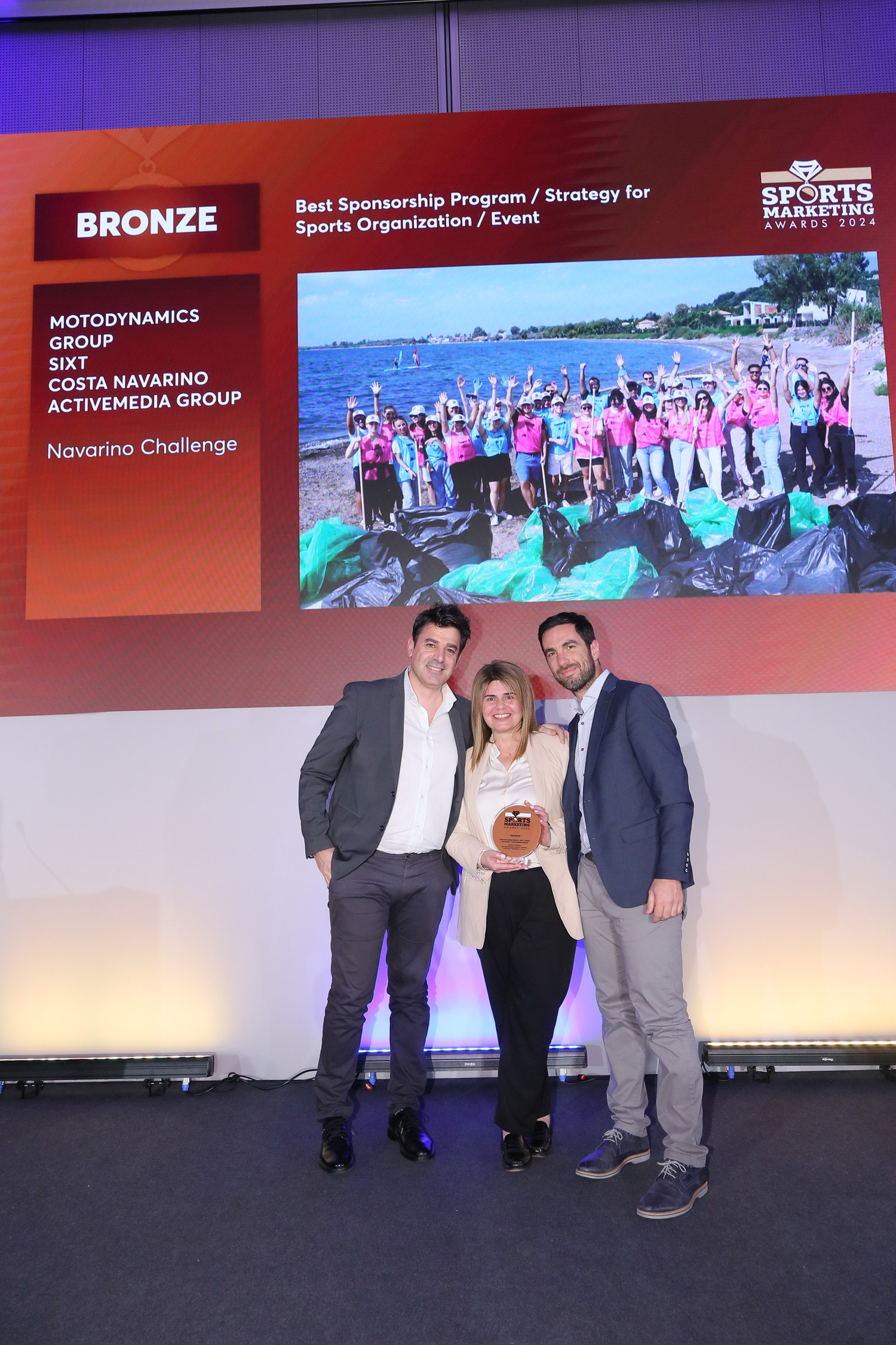 Πιο συγκεκριμένα η στρατηγική που ακολούθησε και υλοποίησε για τη χορηγία της στο event του Navarino Challenge απέφερε ένα Bronze βραβείο στον σπουδαίο θεσμό των Sports Marketing Awards 2024 που αναδεικνύουν τους πρωταγωνιστές στον χώρο του αθλητικού μάρκετινγκ στην Ελλάδα. Η βράβευση του Ομίλου ΜΟΤΟΔΥΝΑΜΙΚΗ πραγματοποιήθηκε στην κατηγορία “Best Sponsorship Program / Strategy for Sports Organization / Event” και αφορούσε στην πληρότητά του χορηγικού προγράμματος του, το οποίο στηρίχθηκε τόσο στους πυλώνες ΕΚΕ, όσο και στην επικοινωνία του premium προφίλ του brand SIXT. Το βραβείο παρέλαβαν η Corporate Affairs Manager του Ομίλου ΜΟΤΟΔΥΝΑΜΙΚΗ, κα. Μάιρα Πασσιά, ο Development Manager της SIXT Greece, κ. Αντώνιος Μαρκουτσάς και ο Network Manager της SIXT, κ. Ανδρέας Σαζακλής.
