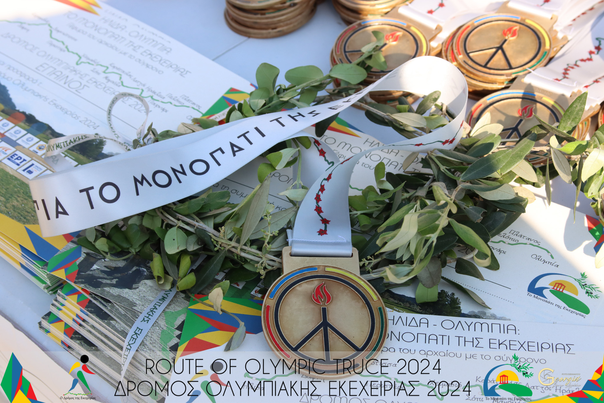Ο «Δρόμος Ολυμπιακής Εκεχειρίας 2024» διεξήχθη επί της Oικοτουριστικής διαδρομής Ήλιδας – Ολυμπίας: το «Μονοπάτι της Εκεχειρίας», δεν είχε αγωνιστικό χαρακτήρα και βραβεύθηκαν με μοναδικά αριθμημένα μετάλλια οι δρομείς που ολοκλήρωσαν τη διαδρομή των 50 χλμ. Το μετάλλιο έχει σχεδιάσει η Χάρις Απέργη, σχεδιάστρια κοσμημάτων. Της πορείας ειρήνης εφέτος ηγήθηκαν ο Steffanos Von Theos από τη Γερμανία (γνωστός φιλέλληνας ο οποίος μόλις πήρε τη σύνταξή του ήρθε για να εγκατασταθεί μόνιμα στην Ελλάδα) και ο Κώστας Χατζής (ο οποίος διαμένει μόνιμα στην Ολλανδία, έχει λάβει μέρος σε όλους τους Δρόμους Εκεχειρίας, κάνοντας κάθε χρόνο το δικό του Δρόμο Εκεχειρίας ώστε να έρθει και να λάβει μέρος).