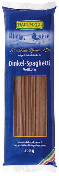Πρόκειται για το προϊόν "Dinkel – Spaghetti Vollkorn", 500g, που παράγεται για