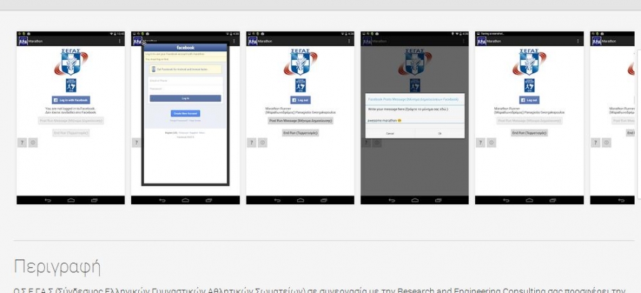 Η εφαρμογή παρέχει την δυνατότητα σε φίλους και συγγενείς των αθλητών του Μαραθωνίου να ενημερώνονται σε πραγματικό χρόνο για το που βρίσκεται ο αθλητής-δρομέας, μέσω του δικτύου κοινωνικής δικτύωσης Facebook.