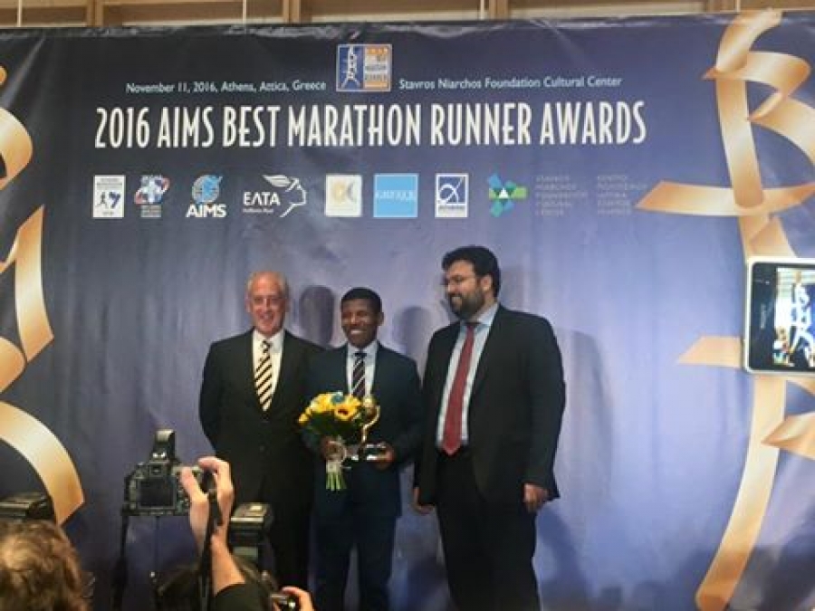 Το χειροκρότημα του κοινού απέσπασε και μόνο η αναφορά των επιτευγμάτων του Κενυάτη αθλητή, ο οποίος βραβεύεται για δεύτερη συνεχόμενη φορά ως κορυφαίος μαραθωνοδρόμος της χρονιάς. Εκτός από το Ολυμπιακό μετάλλιο στους αγώνες του Ρίο ο Ελιουντ Κιπτσόγκε - ο οποίος δεν κατάφερε να παρευρεθεί στην τελετή- κέρδισε επίσης στον Μαραθώνιο του Λονδίνου, σημειώνοντας νέο ρεκόρ διαδρομής (2.03.05).