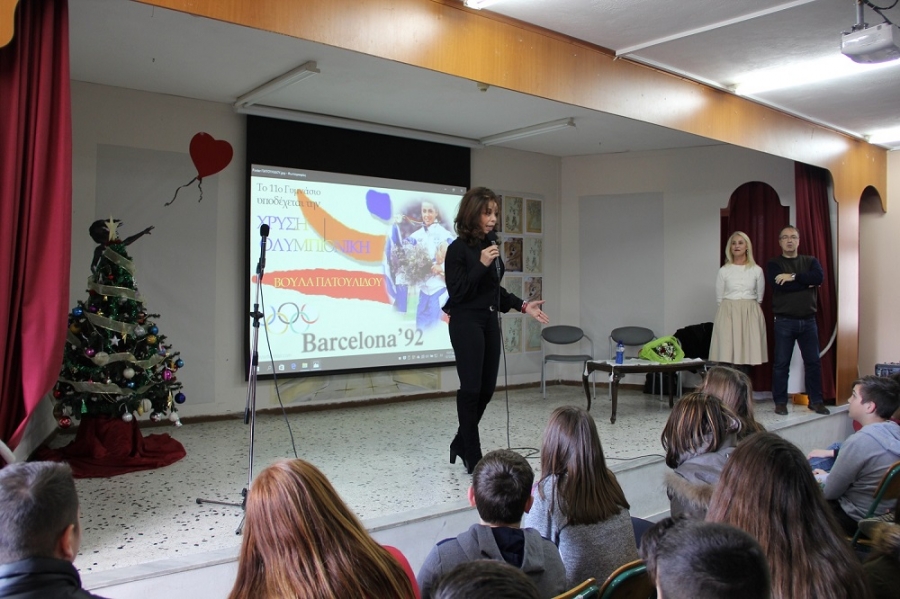 Η σημερινή αντιπεριφερειάρχης Θεσσαλονίκης άνοιξε την ψυχή της στους μαθητές, τους μίλησε για όλα όσα πρέπει να προσέξουν στην πορεία τους στη ζωή, αλλά και τα μαθήματα που θα πάρουν από την εμπλοκή τους στον αθλητισμό. Παράλληλα η Βούλα Πατουλίδου είχε την ευκαιρία να θυμηθεί την ημέρα που κατέκτησε το χρυσό ολυμπιακό μετάλλιο, το οποίο αποδείχθηκε πως άλλαξε την πορεία του ελληνικού αθλητισμού.