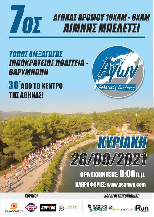 Ο Αθλητικός Σύλλογος Αγών ενημερώνει ότι ο 7ος Αγώνας δρόμου Λίμνης Μπελέτσι 10χλμ και 6 χλμ θα πραγματοποιηθεί την Κυριακή 26 Σεπτεμβρίου 2021.