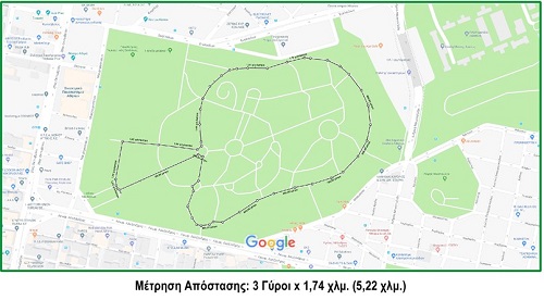 ΠΕΔΙΟ ΑΡΕΩΣ (Εκκίνηση Άγαλμα Κων/νου, πρώτη στροφή δεξιά περνάμε από το Άγαλμα της Αθηνάς, Αγ. Χαράλαμπο, Αγ Ταξιάρχες με το άγαλμα του Υψηλάντη, δεξιά στον πανέμορφο δρόμο με τις προτομές των Ηρώων του 1821, αριστερά μικρό στρωμένο χωμάτινο κομμάτι και έξοδος στο σημείο Εκκίνησης).