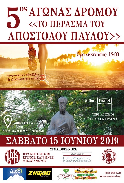 Αφετηρία ορίζεται το μνημείο του Αποστόλου Παύλου στη Μεθώνη και τερματισμός η Αρχαία Πύδνα.