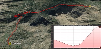 Η διαδρομή είναι η εξής: τα πρώτα 3.5 χιλιόμετρα σε ασφάλτινη και ελαφρώς κατηφορική διαδρομή και τα υπόλοιπα σε χωματόδρομο και ανηφορικά με μεγάλη κλίση. Για το χάρτη της διαδρομής πατήστε ΕΔΩ