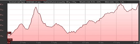 Σχήμα 1. το υψομετρικό προφίλ της διαδρομής 21.1km