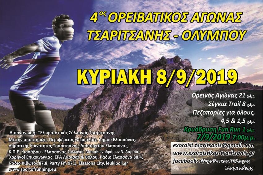 Ο 4ο Ορειβατικός Αγώνας που γίνεται το Σάββατο 7 και την Κυριακή, 8-9 -2019 στην Τσαριτσάνη χρειάζεται και τη δική σας στήριξη και ενεργή συμμετοχή σαν εθελοντές, για την καλύτερη δυνατή οργάνωση όλων των εκδηλώσεων