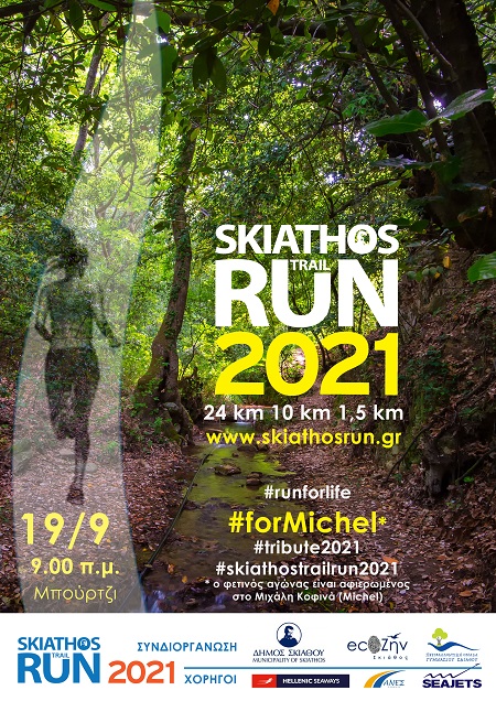 Αυτή τη χρονιά, τρέχουμε για έναν ακόμη σκοπό. Αυτή τη χρονιά, τρέχουμε για να γιορτάσουμε τη ζωή. Τρέχουμε εις μνήμην του αγαπημένου μας φίλου Michel (Μιχάλη) Κοφινά που ποτέ δεν έτρεξε μακριά από την ασθένειά του, που ποτέ δεν έφυγε από τις σκέψεις μας, αλλά και για την υποστήριξη όσων οι ζωές τους έχουν αλλάξει λόγω μιας διάγνωσης καρκίνου - για τους ασθενείς, τους φίλους, τις οικογένειες και τα αγαπημένα τους πρόσωπα. Για να τιμήσουμε τον Michel, εις μνήμην ενός αγαπημένου προσώπου που πάλεψε ή παλεύει τώρα με τον καρκίνο, το Skiathos Trail Run θα προσφέρει το 30% των φετινών εγγραφών, των χορηγιών και των δωρεών που θα γίνουν την ημέρα του αγώνα στη Φλόγα, το Σύλλογο Γονέων Παιδιών με Νεοπλασματική Ασθένεια.
