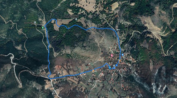 - Τόπος εκκίνησης – τερματισμού : Ο χώρος του Ηρώον 50 μέτρα πριν την πλατεία και απέναντι από το αναψυκτήριο του πολιτιστικού συλλόγου. Υψόμετρο 850 μέτρα.
