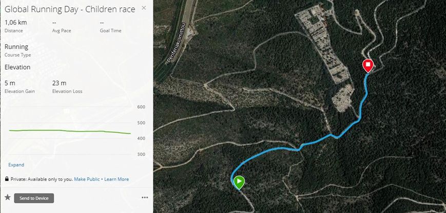 - 2η Διαδρομή: 1 χλμ. (άσφαλτος) - Γυμνάσιο (13-15 ετών)