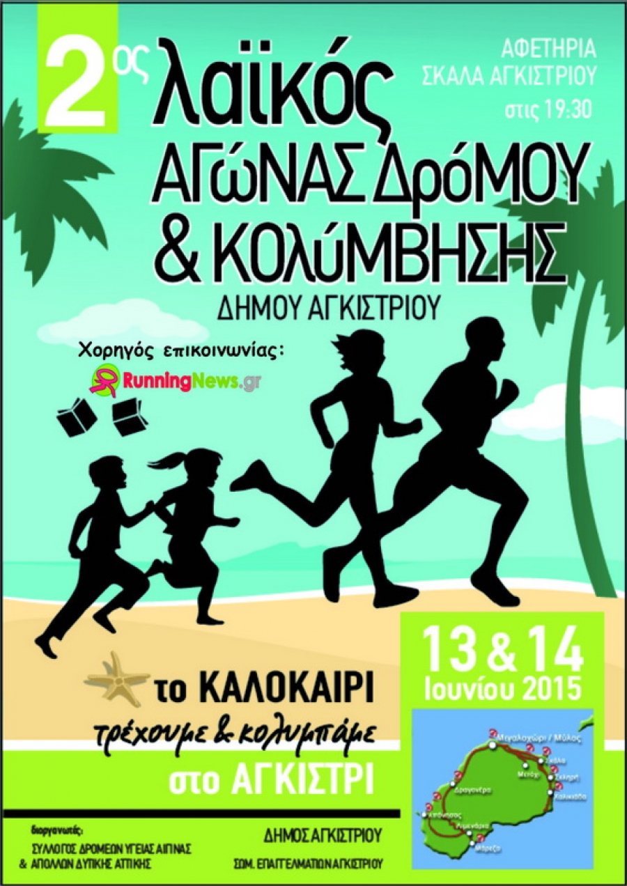 Λαϊκός Αγώνας δρόμου, 13.500μ.(πλήρης γύρος νησιού) που θα διεξαχθεί το Σάββατο 13/6/2015, στις 19.30