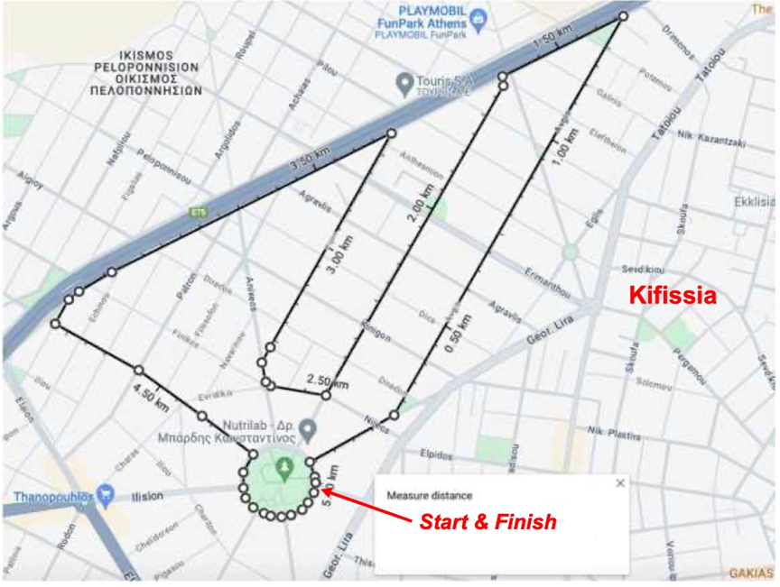 Όλοι οι αγώνες έχουν αφετηρία και τερματισμό το ίδιο σημείο, επί της κυκλικής οδού περιμετρικά της Πλατείας Ηρώων Πολυτεχνείου στην Κηφισιά