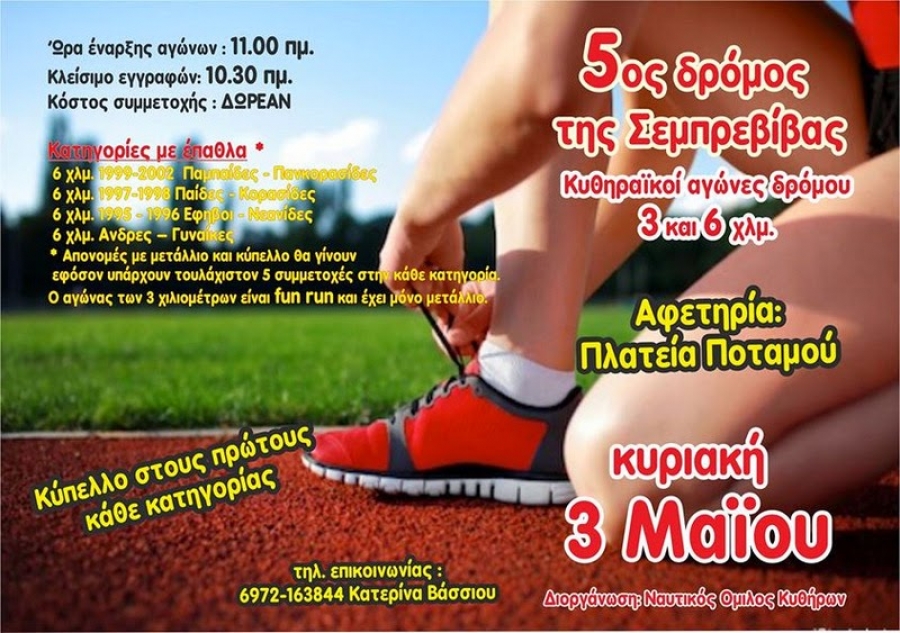 Όποιος θα είναι στα όμορφα Κύθηρα το τριήμερο της Πρωτομαγιάς ας έρθει να τρέξει μαζί μας !!!