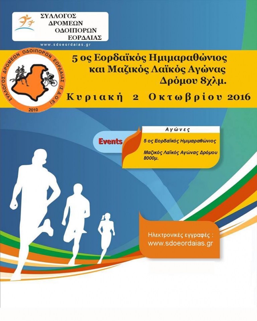 Δηλώσεις συμμετοχής θα γίνονται δέκτες μέσω της επίσημης ιστοσελίδας του Συλλόγου μαςwww.sdoeordaias.grόπου θα υπάρχει ειδική φόρμα εγγραφής έως την Παρασκευή 16 Σεπτεμβρίου 2016 για τις αιτήσεις με μπλουζάκι και μέχρι 23 Σεπτεμβρίου 2016 για τις αιτήσεις χωρίς μπλουζάκι. Η παραλαβή των αριθμών συμμετοχής θα γίνεται την προηγούμενη μέρα του αγώνα στην κεντρική πλατεία Πτολεμαϊδας και την ημέρα του αγώνα έως τις 8.00 πμ.Θα μπορεί να δηλωθεί συμμετοχή και την ημέρα του αγώνα έως τις 8.00 πμ στο χώρο του Δημαρχείου της Πτολεμαίδας όπου θα παραλαμβάνονται και οι αριθμοί συμμετοχής.