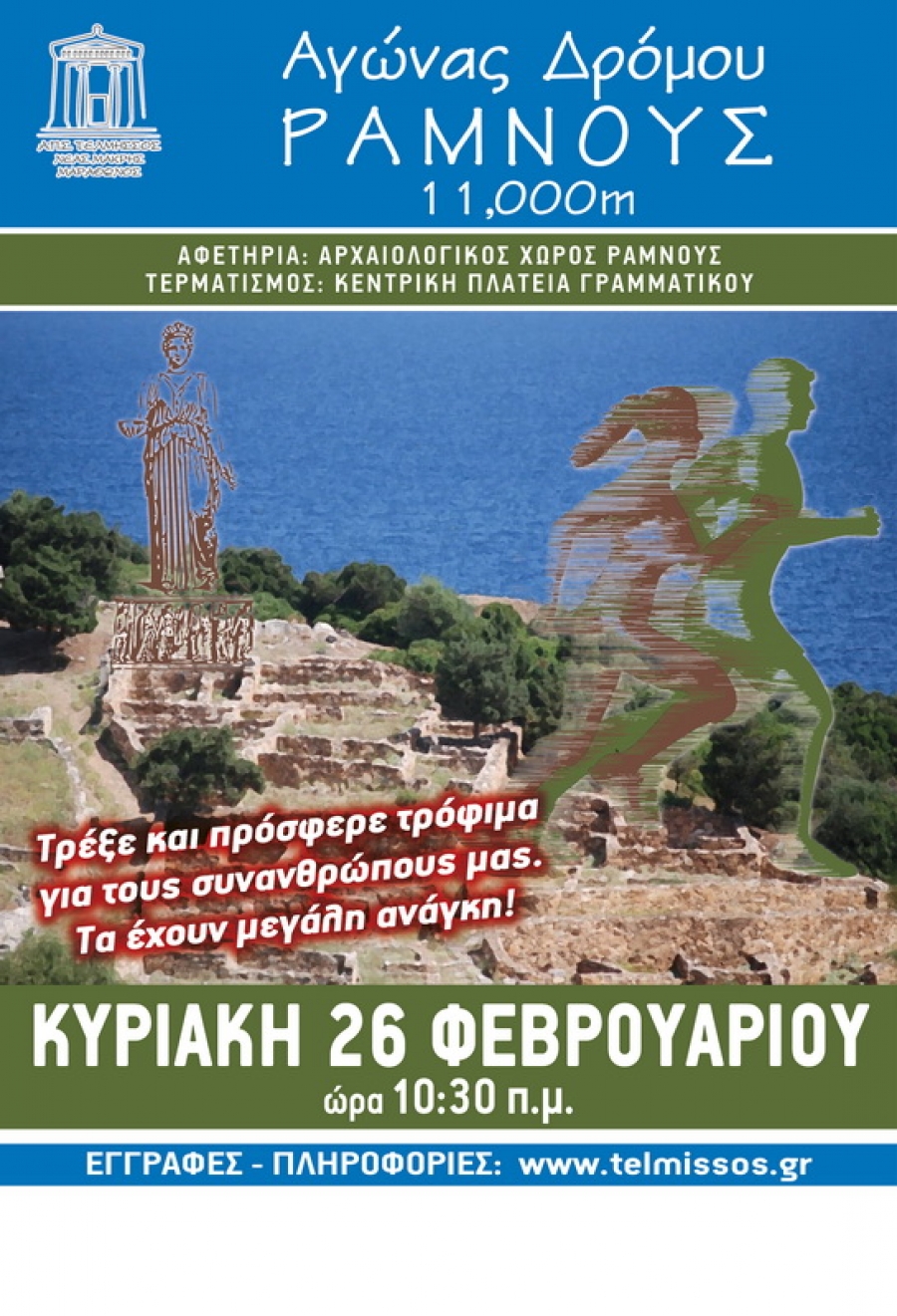 Ο Τελμησσός Νέας Μάκρης - Μαραθώνος προκηρύσσει τον 3ο Αγώνα Δρόμου 11χλμ Ραμνούς- Γραμματικό την Κυριακή 28 Φεβρουαρίου 2017.
