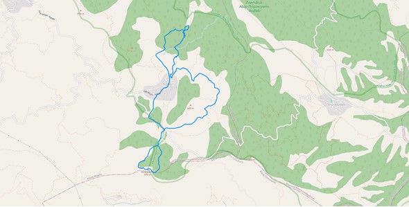 Φεύγοντας από εκεί και σε 200 περίπου μέτρα βγαίνουμε σε δασικό χωματόδρομο όπου κατευθυνόμαστε για περίπου 5χλμ περιμετρικά στο πίσω μέρος του βουνού όπου ακουμπάει ο οικισμός του χωριού απολαμβάνοντας το ήρεμο φυσικό τοπίο κατευθυνόμενοι προς το κομμάτι της διαδρομής που βλέπει τον Θερμαϊκό και αν υπάρχει καθαρή ατμόσφαιρα και τον Όλυμπο. Στο 11ο χλμ περίπου υπάρχει ο δεύτερος σταθμός με ισοτονικό, νερό, coca cola και σνακ. Μπαίνουμε σε ένα κατάφυτο μονοπάτι όπου για 300 περίπου μέτρα υπάρχει κοινή πορεία ανάβασης και κατάβαση, επιλέγοντας τη δεξιά στροφή κι ανηφορίζουμε. Σε απόσταση περίπου 3χλμ φτάνουμε στην κορυφή καλογερικό σε υψόμετρο 1010 μέτρων περίπου, όπου τα τελευταία 300 μέτρα πριν την κορυφή έχουν κλίση 10% με 15%. Κατηφορίζουμε από την κορυφή και σε εναλλασσόμενο δάσος από δρυς και οξιές φτάνουμε από το αριστερό τώρα μέρος στον κοινό σταθμό τροφοδοσίας όπου είναι και ο τελευταίος. Διασχίζουμε αριστερά άσφαλτο όπου περνάμε από θεόρατα πεύκα ( γνωστό ως θέση Πευκάκια) και σε περίπου 700 μέτρα στρίβουμε δεξιά από το ξωκλήσι του Αγίου Ραφαήλ. Διασχίζουμε τον άσφαλτο για περίπου ένα χιλιόμετρο στην περιοχή Τσαΐρια και κατηφορίζουμε προς τον τερματισμό όπου έχουμε τη δυνατότητα να κοιτάξουμε το χωριό από μία άλλη πλευρά του φθάνοντας στον πολυπόθητο τερματισμό.