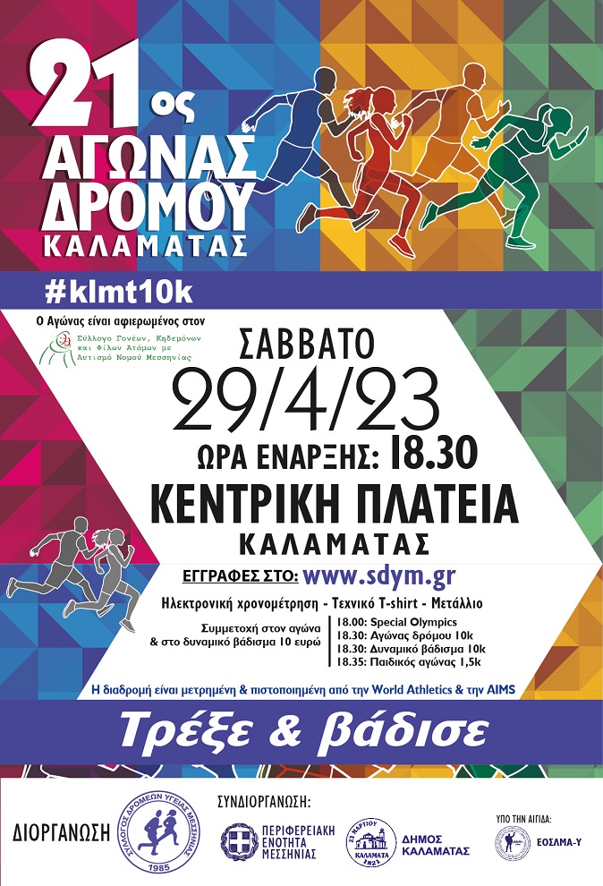 Το Σάββατο 29 Απριλίου θα πραγματοποιηθεί ο 21ος Αγώνας Δρόμου Καλαμάτας.