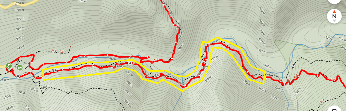 Όπως είναι γνωστό και μετά την ψήφιση του ΠΔ για τις προστατευόμενες ζώνες στον Όλυμπο, ένα κομμάτι της διαδρομής μας περνάει μέσα από τη Ζώνη Α του Εθνικού Δρυμού. Το κομμάτι αυτό ξεκινάει από τη γέφυρα της Καστάνας με φορά προς το μοναστήρι του Αγίου Διονυσίου, μέσω του Ε4.