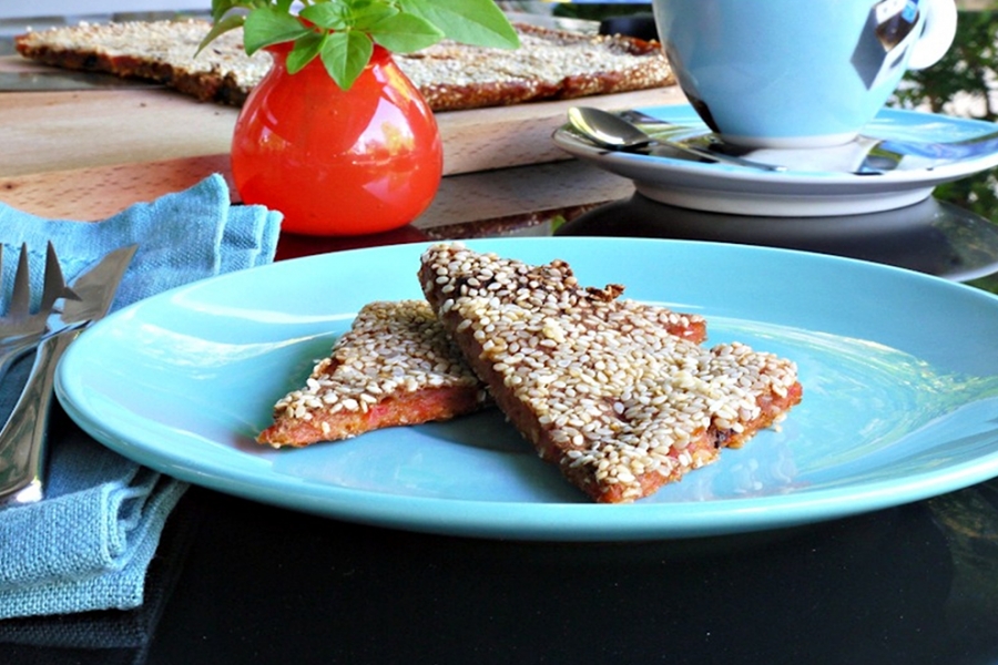 Άλειψε ένα μικρό ταψί με το υπόλοιπο του βουτύρου και πασπάλισε τον πάτο του με σουσάμι έως ότου τον καλύψει καλά. Στρώσε τη ζύμη σε όλη την επιφάνεια του ταψιού σε πάχος 2 εκατοστά και πασπάλισε ξανά με το σουσάμι. Ψήσε σε προθερμασμένο φούρνο στους 180º C για 45′ λεπτά. Όταν ψηθεί και ροδίσει, την περιχύνεις με το υπόλοιπο μέλι. Πριν σερβίρεις, πασπάλισε με ζάχαρη άχνη και κανέλα!