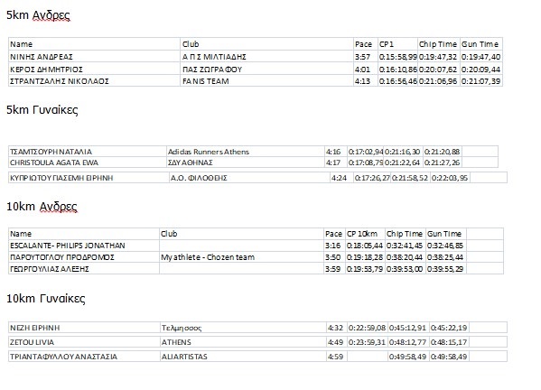 | 5 | 1 | 535 | ΤΣΑΜΤΣΟΥΡΗ ΝΑΤΑΛΙΑ | Adidas Runners Athens | 4:16 | 0:17:02,94 | 0:21:16,30 | 0:21:20,88 |