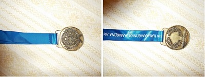 Το ίδιο μετάλλιο σε μεγαλύτερη κοπή 8cm και με την ένδειξη του αγωνίσματος με χρυσή κορδέλα είναι για τους νικητές των αγωνισμάτων.