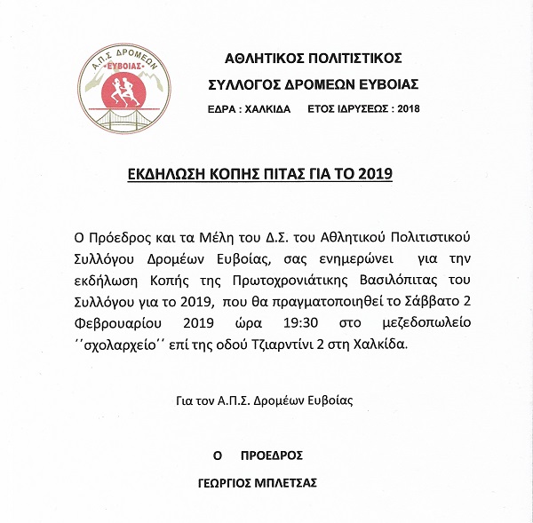 Προσφορά στην Εκδήλωση ΠΡΩΤΟΧΡΟΝΙΑΤΙΚΗΣ ΠΙΤΑΣ