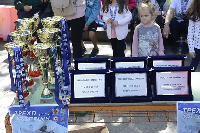 Ο αγώνας ολοκληρώθηκε με τις απονομές στους νικητές και τις νικήτριες, στη Μέριμνα Παιδιού, καθώς και στις πολυπληθέστερες ομαδικές συμμετοχές: «ΜΑΣΟΥΤΗΣ», της Αθλητικής Γυμναστικής Ένωσης Πιερίας, του 5ου ΓΕΛ, του 2ου ΕΠΑΛ.