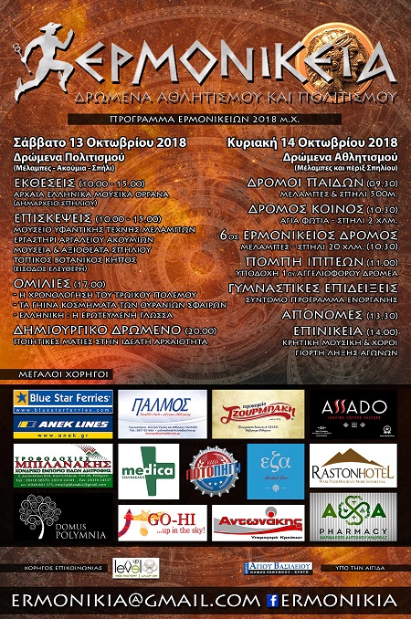 Με το συμβολικό πέρασμα από την φθινοπωρινή ισημερία στον νέο μήνα, η Αγωνοθεσία των Ερμονικείων ανακοινώνει το διήμερο πρόγραμμα των Ερμονίκειων Αγώνων 2018 μ.Χ., βάζοντας και επίσημα την σφραγίδα στην τελευταία φάση των οργανωτικών της προετοιμασιών.