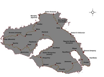 Πρωταγωνιστής ήταν το ίδιο το νησί της Λέσβου. Διασχίσαμε τόσα πολλά από τα χαρακτηριστικά του σημεία: Από την πόλη της Μυτιλήνης και τους ελαιώνες στις αναβαθμίδες του βόρειου και κεντρικού τμήματος μέχρι τη Συκαμνιά και τον πετρόκτιστο Μόλυβο όπυ φτάσαμε το μεσημέρι. Μετά στις βελανιδιές της Φίλιας και στο ηφαίστειο της Βατούσσας το απόγευμα και το βράδυ στο Απολιθωμένο Δάσος της δυτικής πλευράς. Η νύχτα μας βρήκε στο δρόμο για το λεκανοπέδιο της Καλλονής και γύρω από τον Κόλπο της ως τον Πολιχνίτο και το ξημέρωμα στην παραλία στα Βατερά. Πρωί στο Πλωμάρι και από εκεί στη Γέρα και τα χωριά της, στον Ευεργέτουλα και στα Λουτρά μέχρι τη Χαραμίδα και την παραλιακή των δρομέων στο ισιάδι του αεροδρομίου που μας έφερε ξανά στην πόλη.