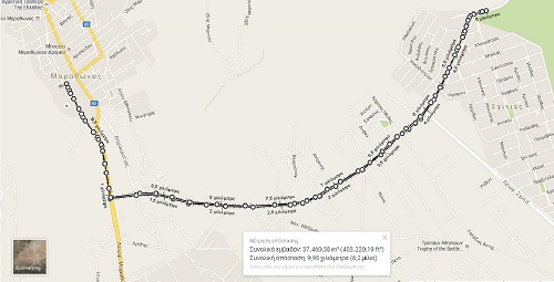 Έναρξη από την αφετηρία Μαραθωνίου δρόμου, με κατεύθυνση προς την Λ. Μαραθώνος, και με στροφή αριστερή στα 1000 μέτρα (τρέχουμε στην αριστερή λωρίδα του δρόμου) και με κατεύθυνση προς το κάτω Σούλι. Η αναστροφή του Αγώνα γίνεται μετά το φανάρι του Σχοινιά στο 5 χλμ, στην επιστροφή θα τρέχουμε στη δεξιά λουρίδα του δρόμου, επί της Λεωφ. Σουλίου, και φτάνοντας στην Λ. Μαραθώνος κάνουμε δεξιά για τον τερματισμό μας στην ιστορική αφετηρία Μαραθωνίου δρόμου.