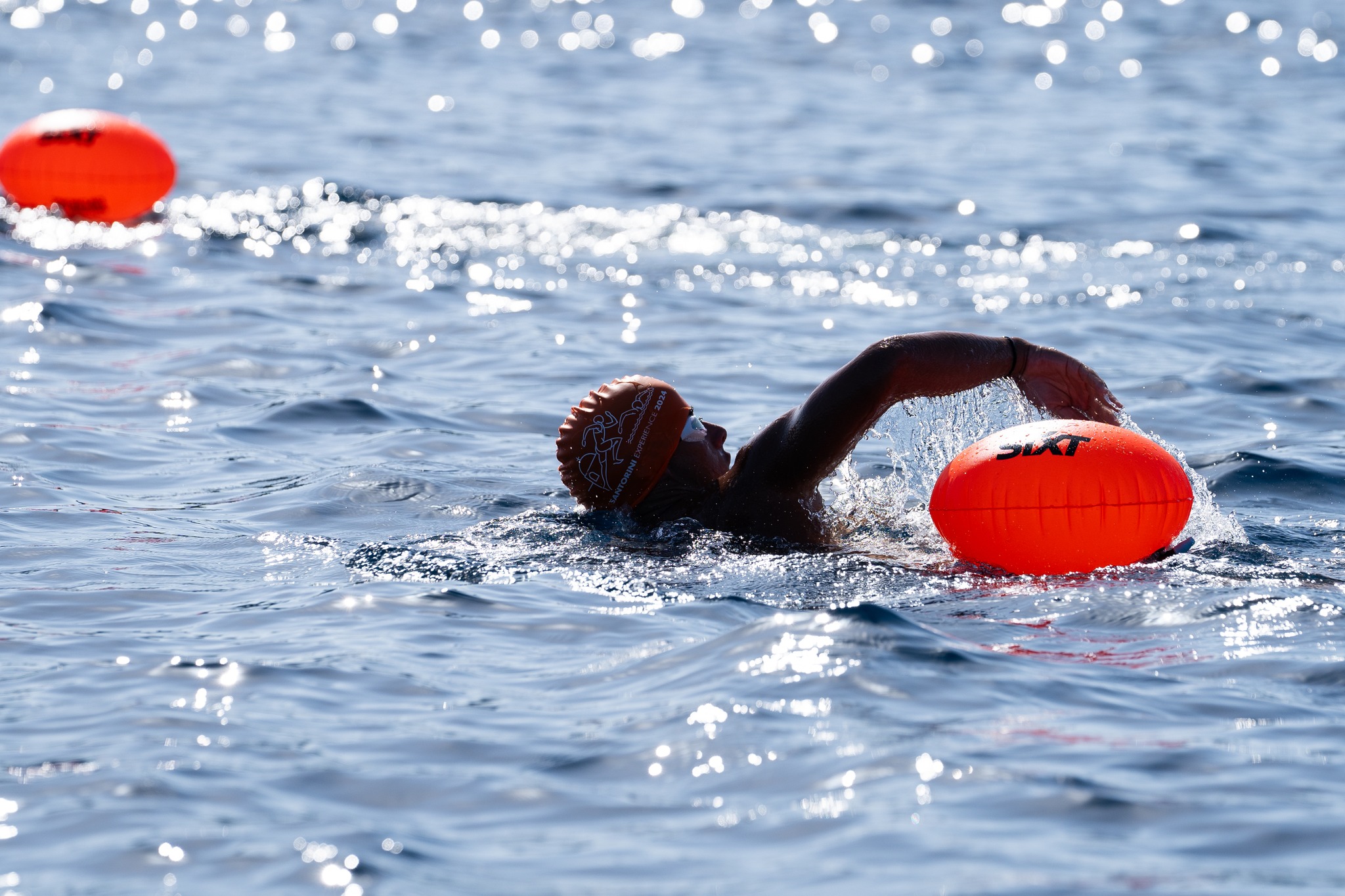 Μια από τις πιο εντυπωσιακές δράσεις του προγράμματος θα είναι η κολυμβητική διαδρομή open water που θα διεξαχθεί το πρωί της Παρασκευής 10 Οκτωβρίου. Οι συμμετέχοντες θα διανύσουν μια ξεχωριστή διαδρομή 2,4 χλμ. (1,5 μίλι), ξεκινώντας από το Ηφαίστειο και τερματίζοντας στο παλιό λιμάνι των Φηρών, έχοντας ως φόντο την επιβλητική θέα του νησιού. Πρόκειται για μια διαδρομή που παρέχεται στους συμμετέχοντες μόνο μια φορά τον χρόνο με άδεια από την Περιφερειακή Υπηρεσία Τουρισμού Κυκλάδων και με τη σύμφωνη γνώμη του Λιμεναρχείου Θήρας. Τα νερά με βάθος που φτάνουν μέχρι και τα 400 μέτρα και θερμοκρασία γύρω στους 22-23°C, προσφέρουν τις ιδανικές συνθήκες για έναν απολαυστικό αγώνα. Η διοργάνωση δίνει ιδιαίτερη έμφαση στην ασφάλεια των αθλητών, με την παρουσία εξειδικευμένων ναυαγοσωστών και ναυαγοσωστικών σκαφών καθ’ όλη τη διάρκεια της διαδρομής. Στην ασφάλεια του αγώνα θα συμβάλλουν επίσης οι επαγγελματίες ναυαγοσώστες και τα σκάφη της Lifeguard Patrol, που θα φροντίσουν και για τον απαραίτητο φαρμακευτικό και ιατρικό εξοπλισμό. Την κολύμβηση θα υποστηρίξουν ακόμα με σκάφη και προσωπικό η Ένωση Λεμβούχων Σαντορίνης, η Caldera Yachting και ο Ναυτικός Όμιλος Σαντορίνης, ενώ η διοργάνωση θα εξασφαλίσει για όλους τους αθλητές σωσίβιο ασφαλείας, παρέχοντας επιπλέον προστασία σε κάθε συμμετέχοντα. Η χρήση ατομικού πλωτήρα είναι υποχρεωτική για όλους. Τεχνικός Διευθυντής του αγώνα είναι ο κορυφαίος προπονητής Νίκος Γέμελος, με πολυετή εμπειρία και σημαντικές διακρίσεις σε Ολυμπιακούς αγώνες και παγκόσμια πρωταθλήματα.